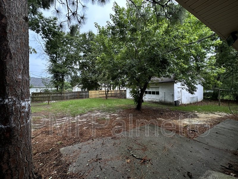 Backyard has a large storage/workshop
