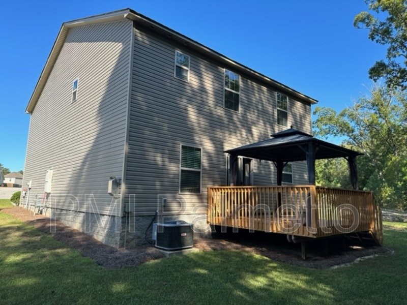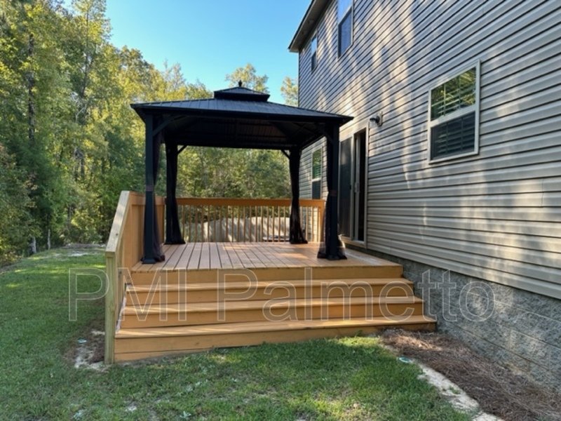 The back deck has a covered area and backs up to the serenity of a wooded area.