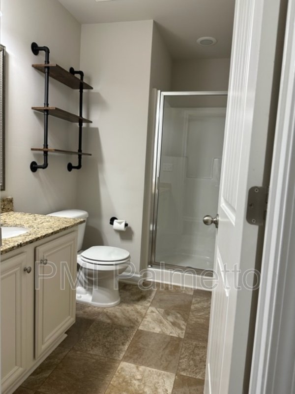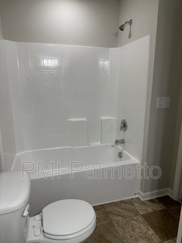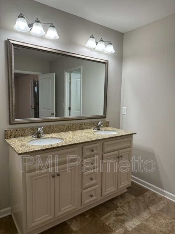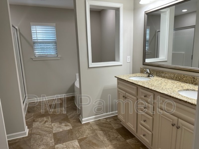 The master bathroom has a separate water closet, double vanity, garden tub and shower.