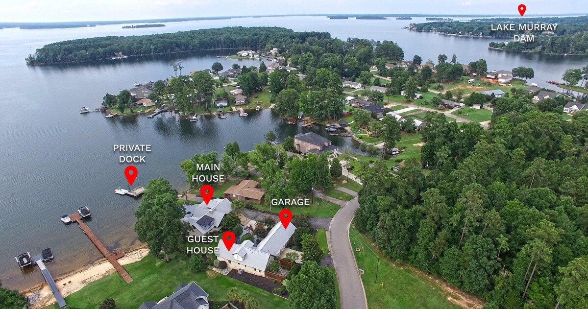 Casa Lago, a beautiful paradise on Lake Murray, SC. is a luxury vacation home, completely remodeled in 2022. The guest cottage is included with your reservation. Endless viewpoints stretching all the way across the lake with a view of Little Mountain. Private boat ramp, dock and walk in swimming area. Smokeless fire pit, fishing equipment, kayaks and paddleboards included. Sleep a MAX of 16 people.