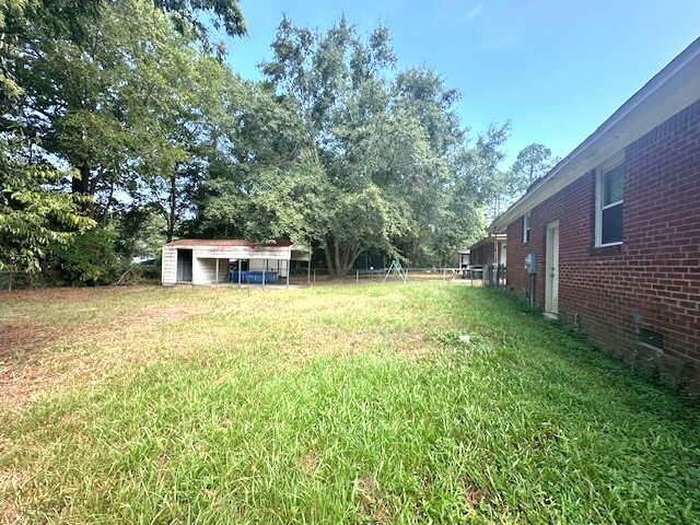 As you venture into the large, fenced-in backyard you will find an additional storage room on the back of the home as well as another carport area for lawn equipment, recreational toys, etc.