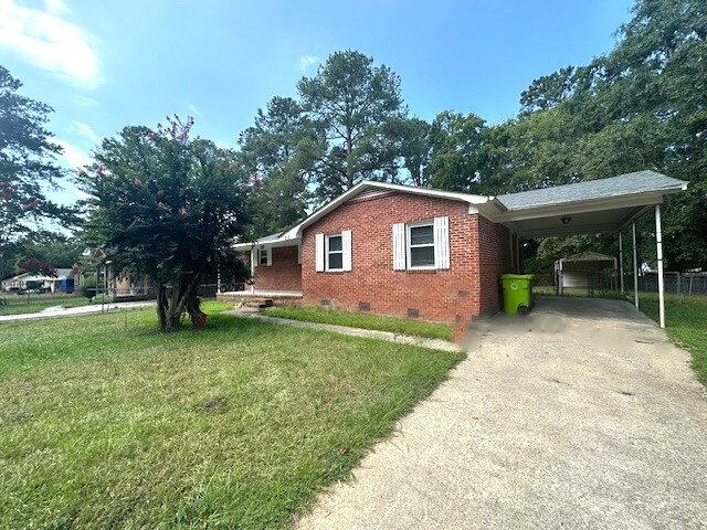 You will be greeted by a covered front porch and single-car carport and a large fenced-in back yard.