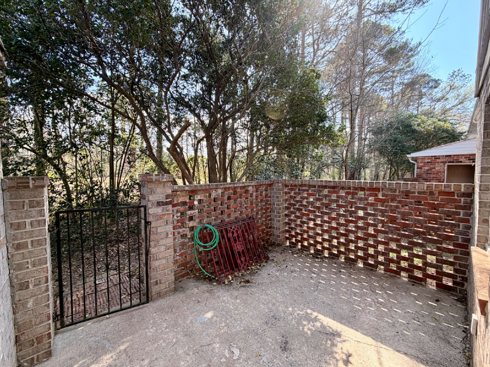 Just off the back of the home, a private patio area includes a dedicated laundry space with washer and dryer hookups, adding convenience and extra storage options.