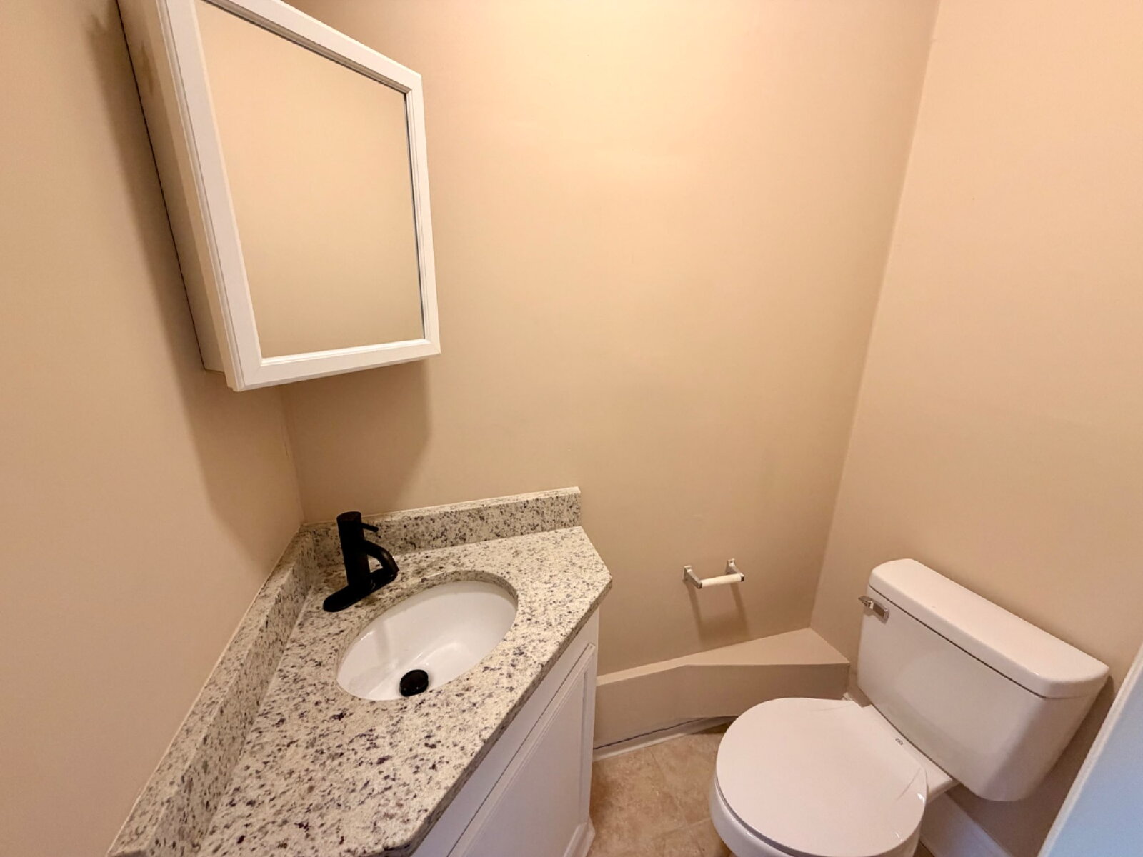The kitchen is equipped with granite countertops, stainless steel appliances, and ample cabinet space, creating a functional and stylish area for everyday cooking and entertaining. A convenient half bathroom is located on the main level off the living areas.