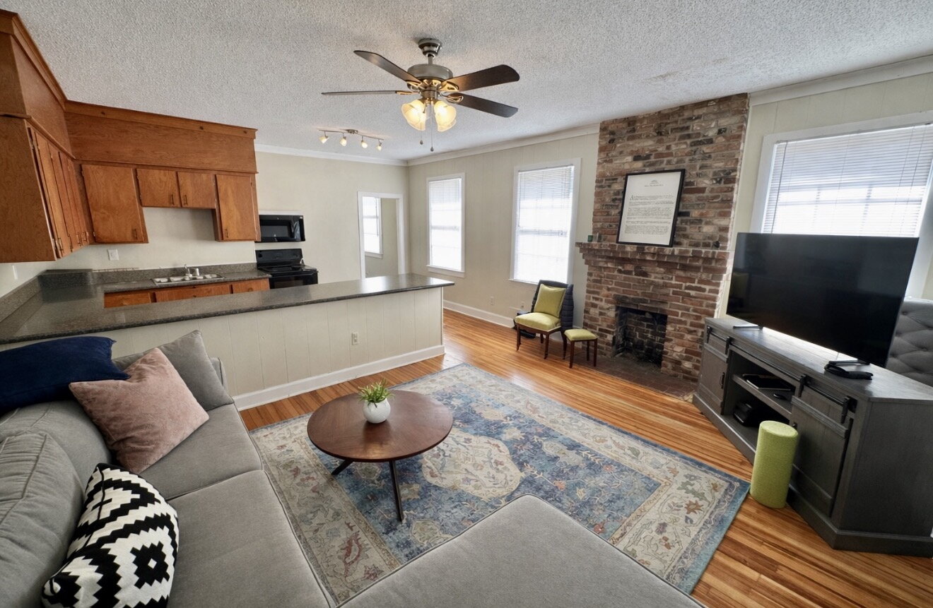 Discover the perfect blend of charm and modern comfort at 1004 Belleview St Apt B, a delightful duplex nestled in the heart of Columbia, SC. This inviting one-bedroom, one-bath home features a thoughtfully designed layout with a cozy living room highlighted by a classic brick fireplace, creating a warm and welcoming atmosphere.