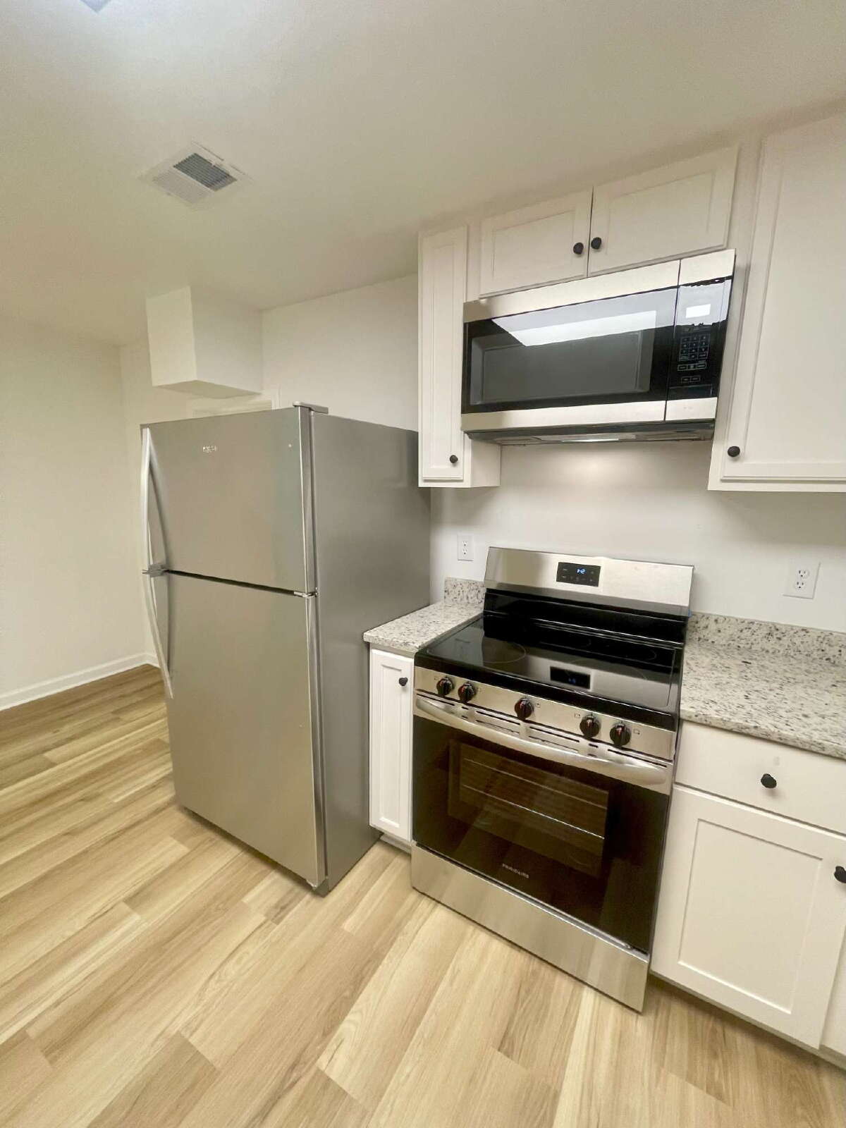 The thoughtfully designed kitchen is equipped with a microwave, refrigerator, stove, and oven, making it easy to prepare meals and entertain. Three well-sized bedrooms provide plenty of room to relax, work, or entertain while updated fixtures and finishes create a polished feel throughout.