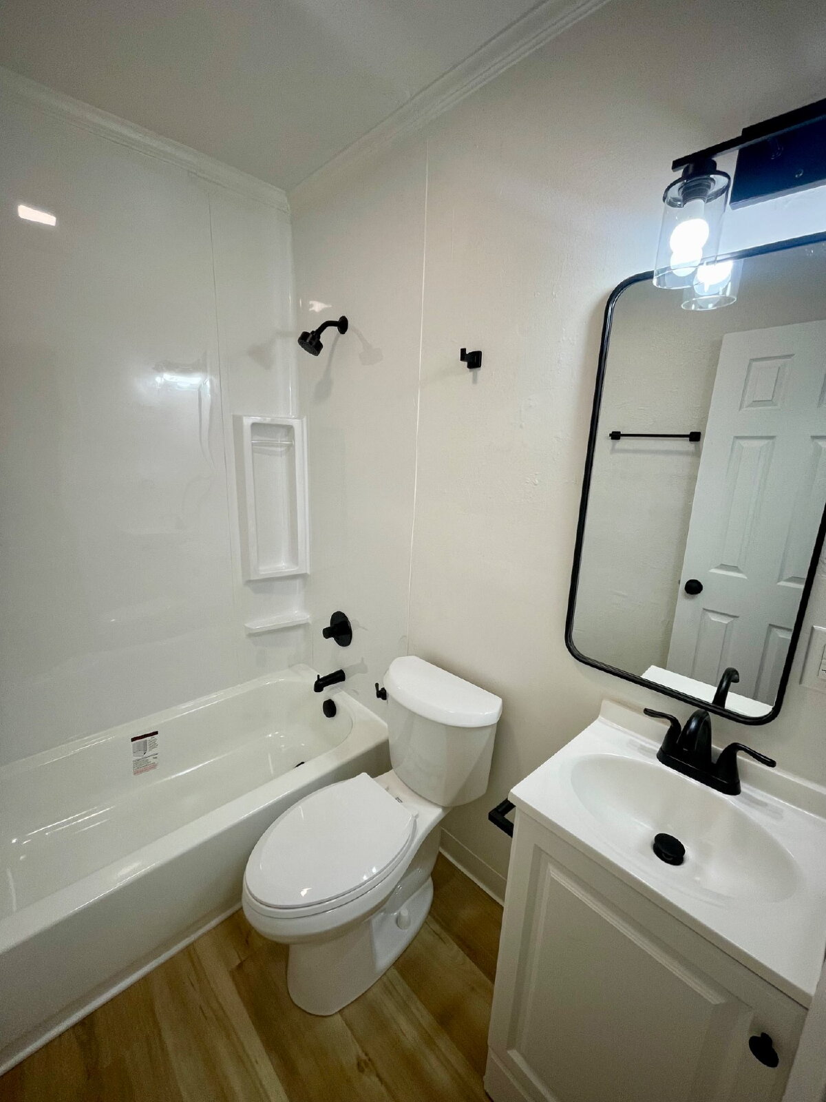 Two comfortable bedrooms and a full bathroom are located on the opposite side of the unit. The bedrooms are light and cozy, offering flexibility for use as a sleeping space, an office, or a guest room. The bathroom has been updated with modern finishes to provide a clean and relaxing space.