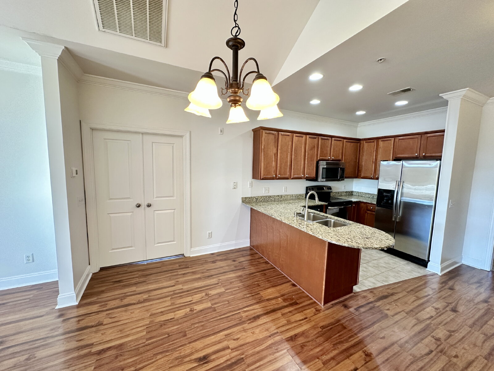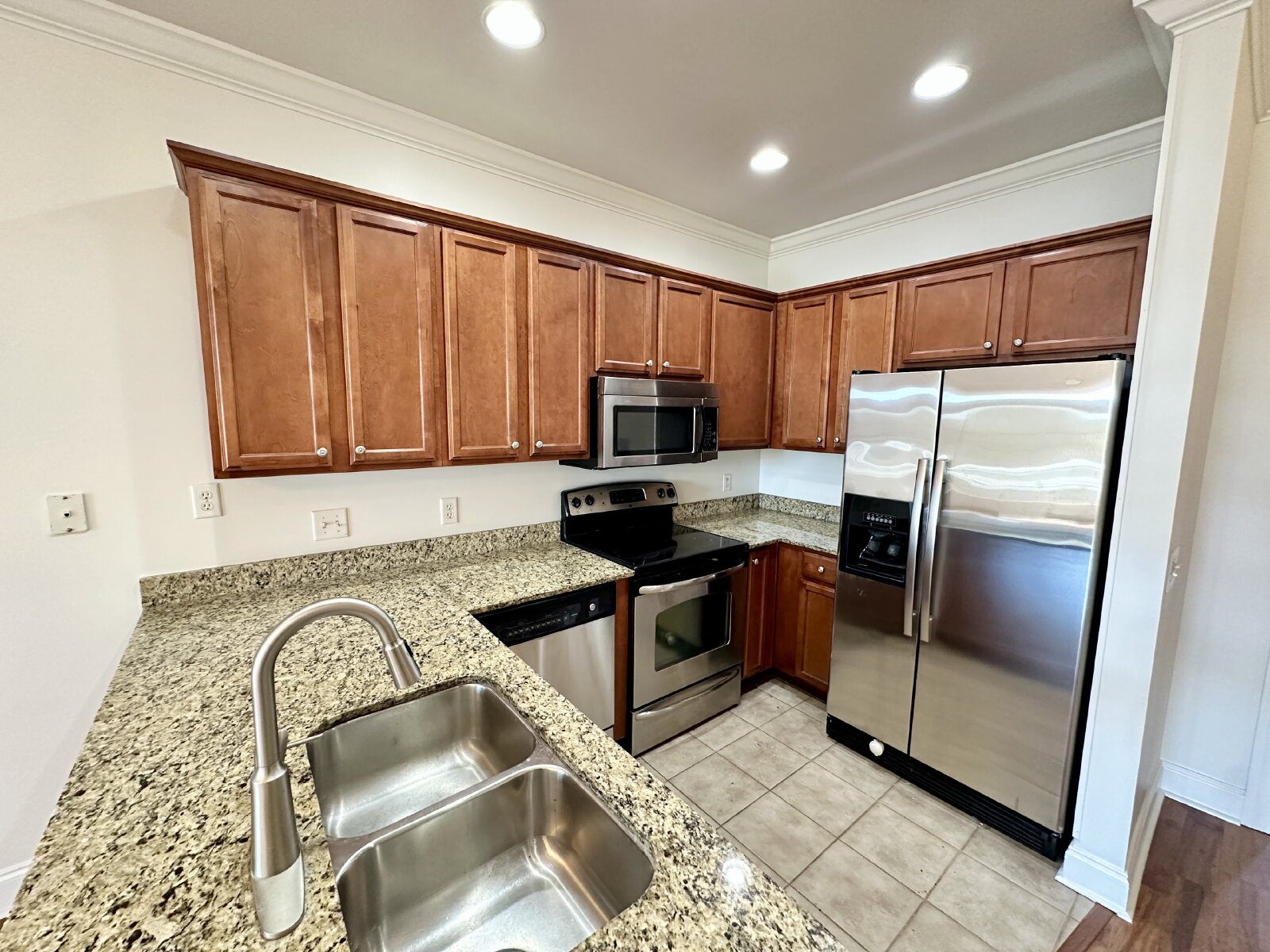 Inside, you’ll find over 1,550 sq ft of upgraded living space featuring hardwood floors, ceramic tile, and warm, inviting paint colors throughout. The modern kitchen includes granite countertops, stainless GE appliances, and a split bedroom floor plan that provides both privacy and functionality.