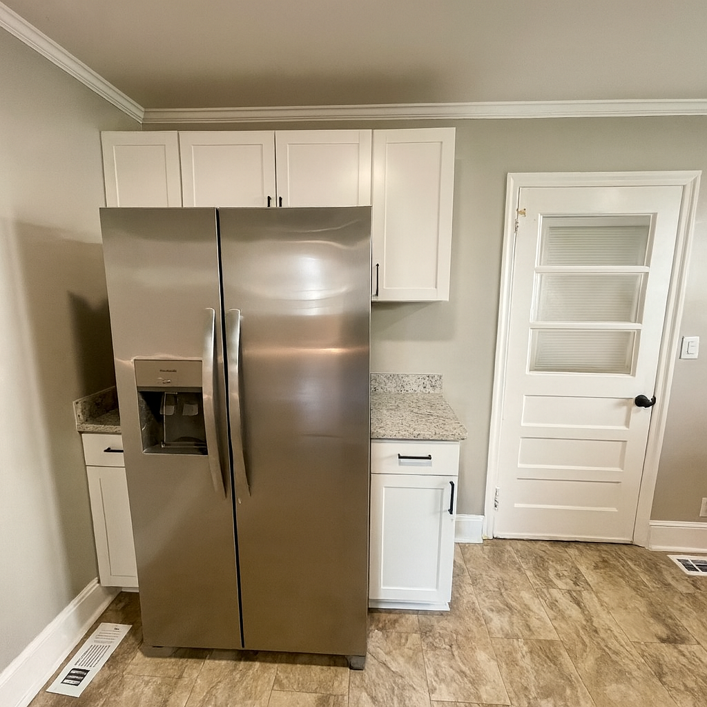 The kitchen is equipped with sleek stainless steel appliances—including a refrigerator, dishwasher, microwave, and oven—providing the convenience and functionality you need for everyday living.
