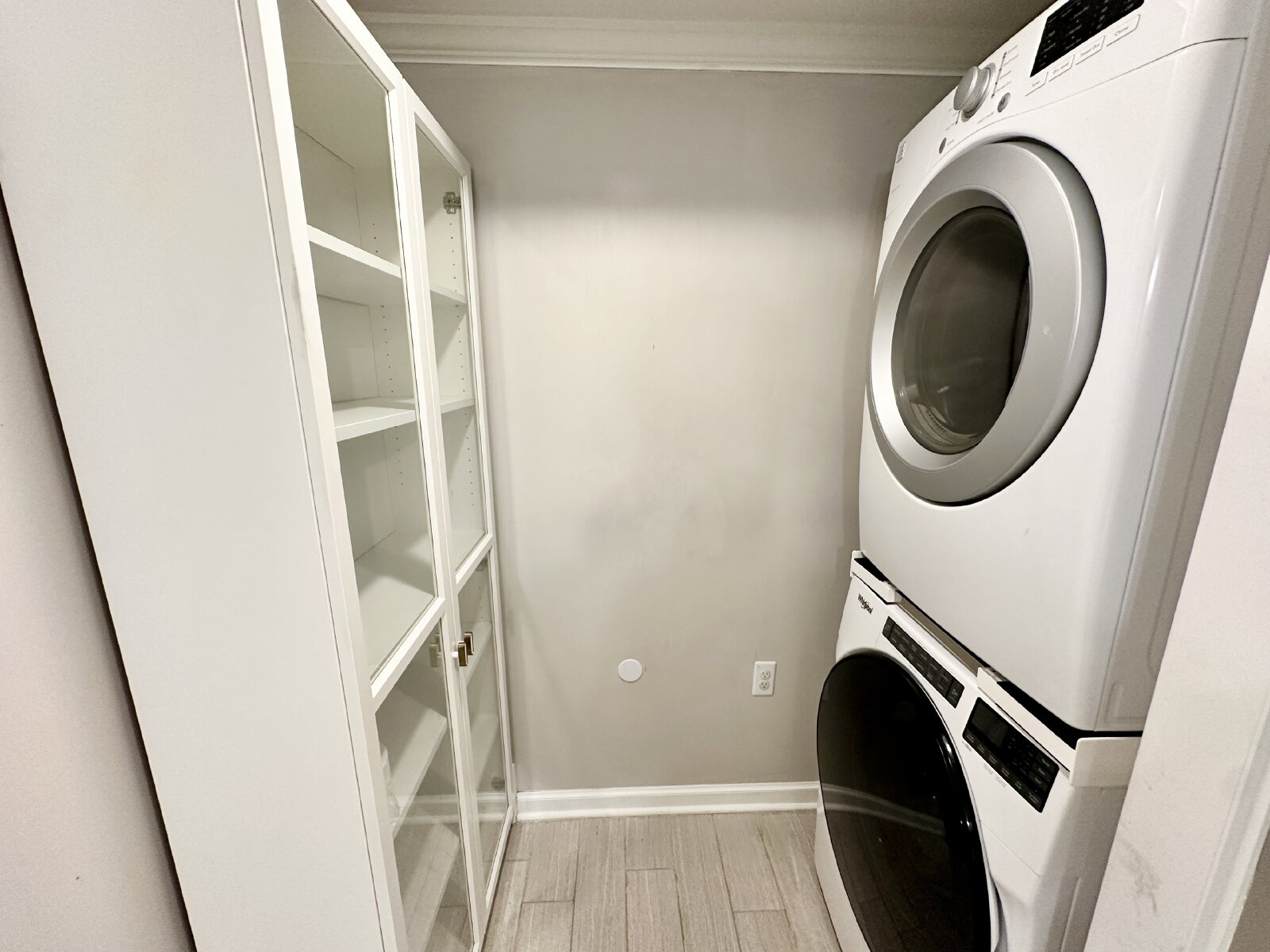 The laundry area includes a full appliance package: washer & dryer included and additional storage space.
