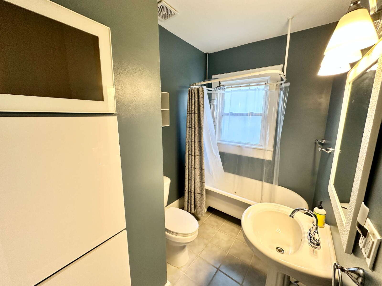 As you move through the hallway, you’ll find three secondary bedrooms and an updated guest bathroom featuring a claw-foot soaking tub, perfect for unwinding.