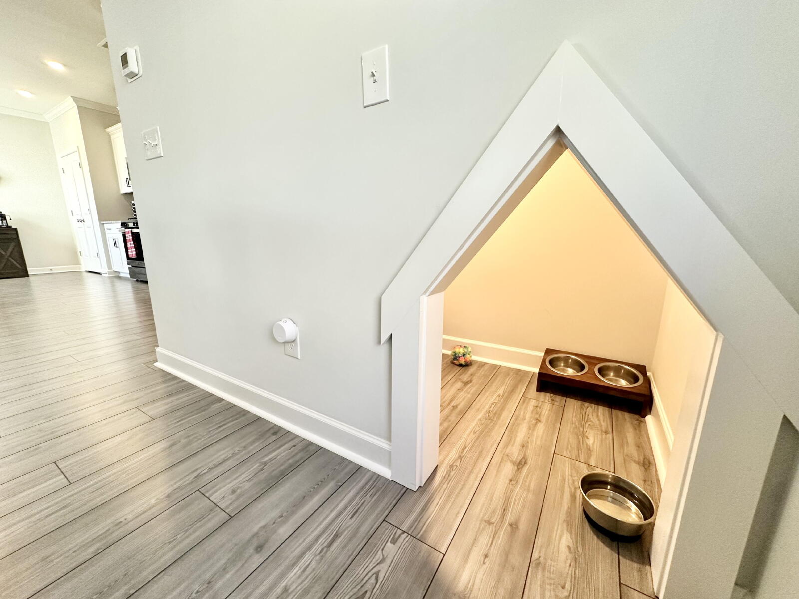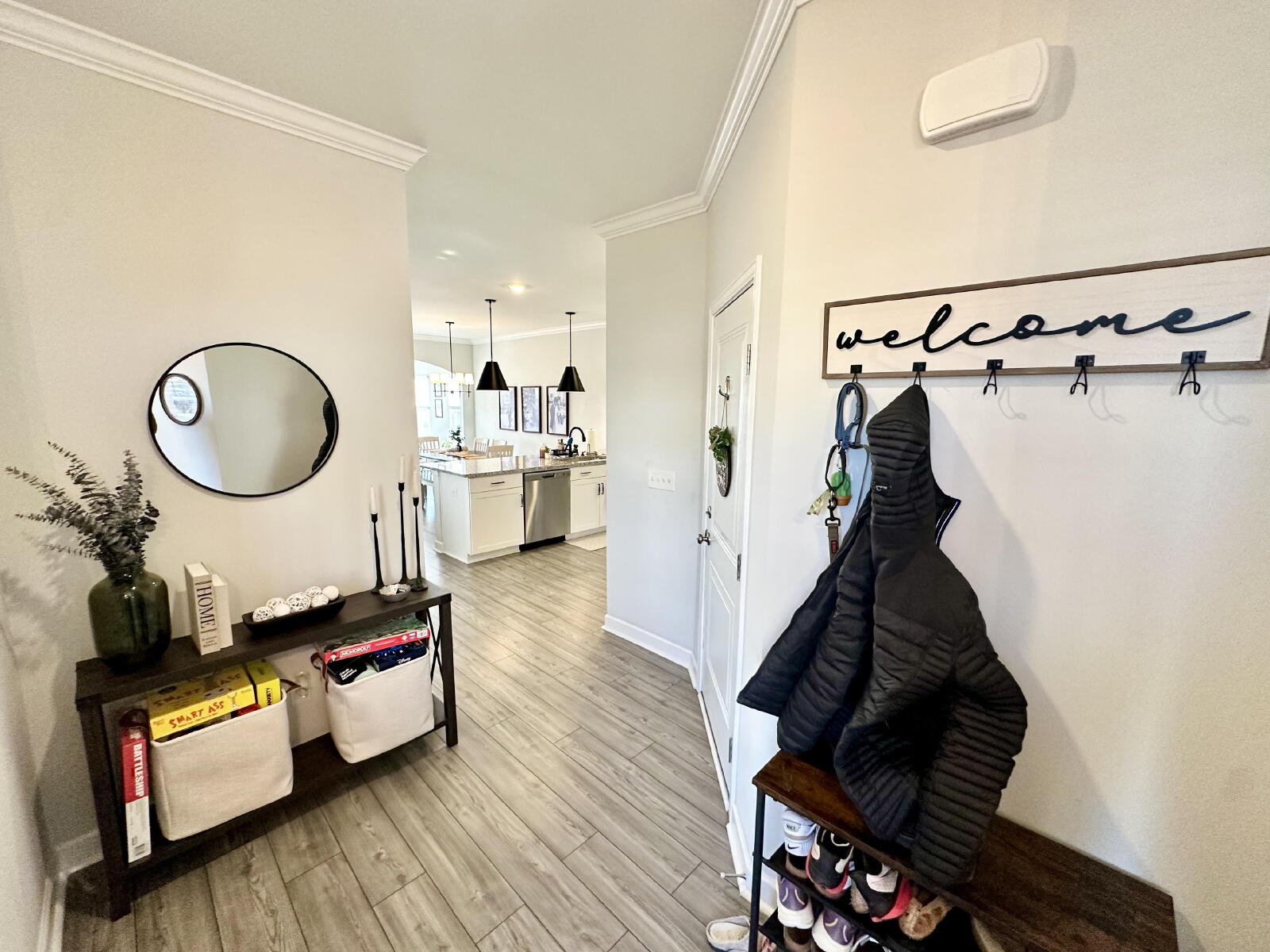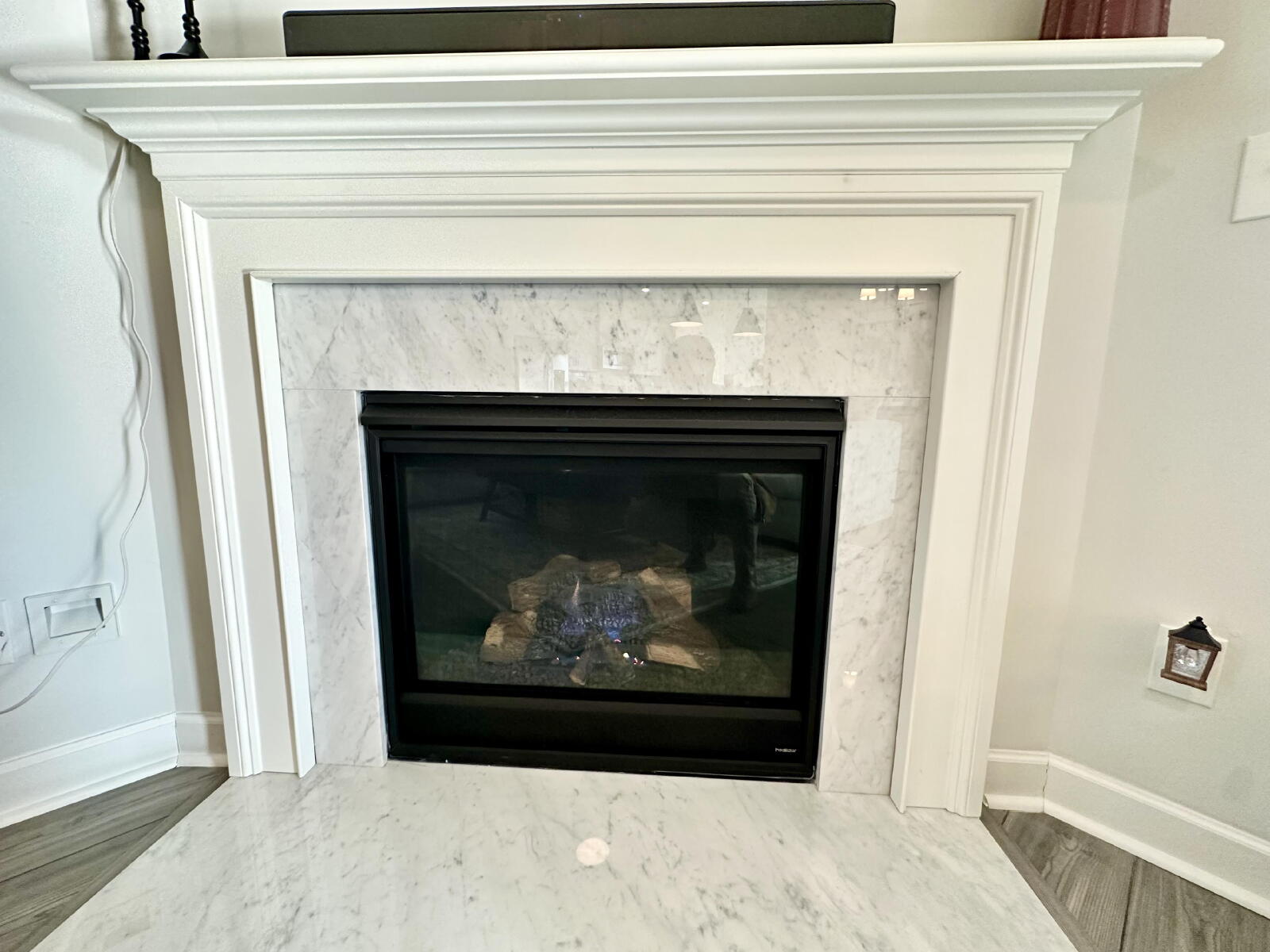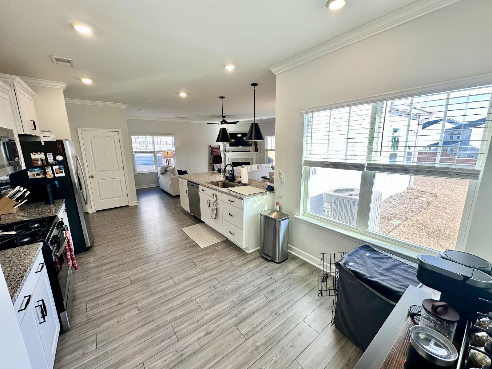 This 3-bedroom, 2.5-bath home with 2,049 square feet offers an inviting open-concept layout perfect for everyday living and entertaining. The main level features a spacious living and dining area that flows seamlessly into a bright sunroom, plus a convenient pet pad for your four-legged companions. The dedicated eat-in kitchen is thoughtfully finished with white cabinetry, granite countertops, a white tile backsplash, pendant lighting over the bar, a pantry, and a gas stove, and it opens to a cozy natural gas fireplace, ideal for relaxing evenings at home. Crown molding throughout the first floor and hardwood tread stairs add a polished, upscale touch.